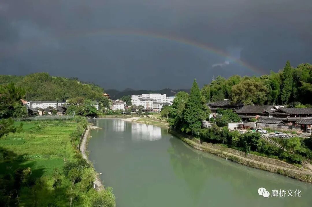 打着雨伞走在石板路上,沿着石路拾级而上,看到桥头那两株有1200多年树龄的柏树和香樟树静静地屹立在河边,仿佛跟路过的每一个行人诉说廊桥几百年来的沧桑。